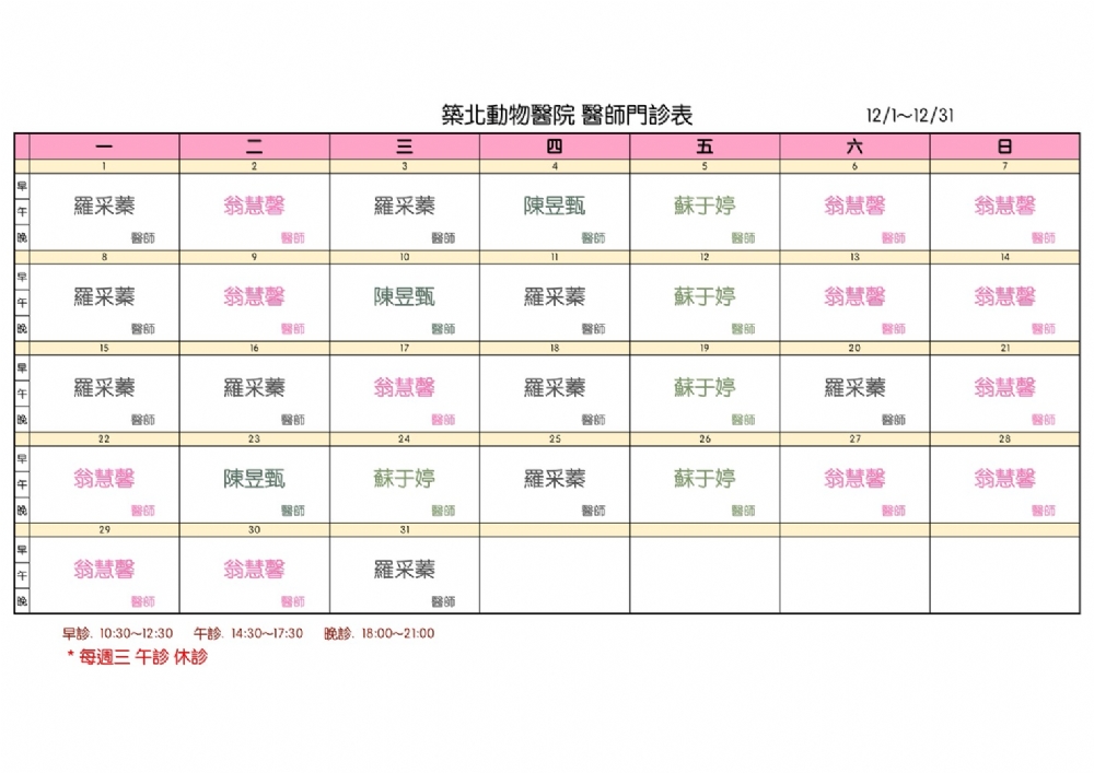 2025年12月門診表