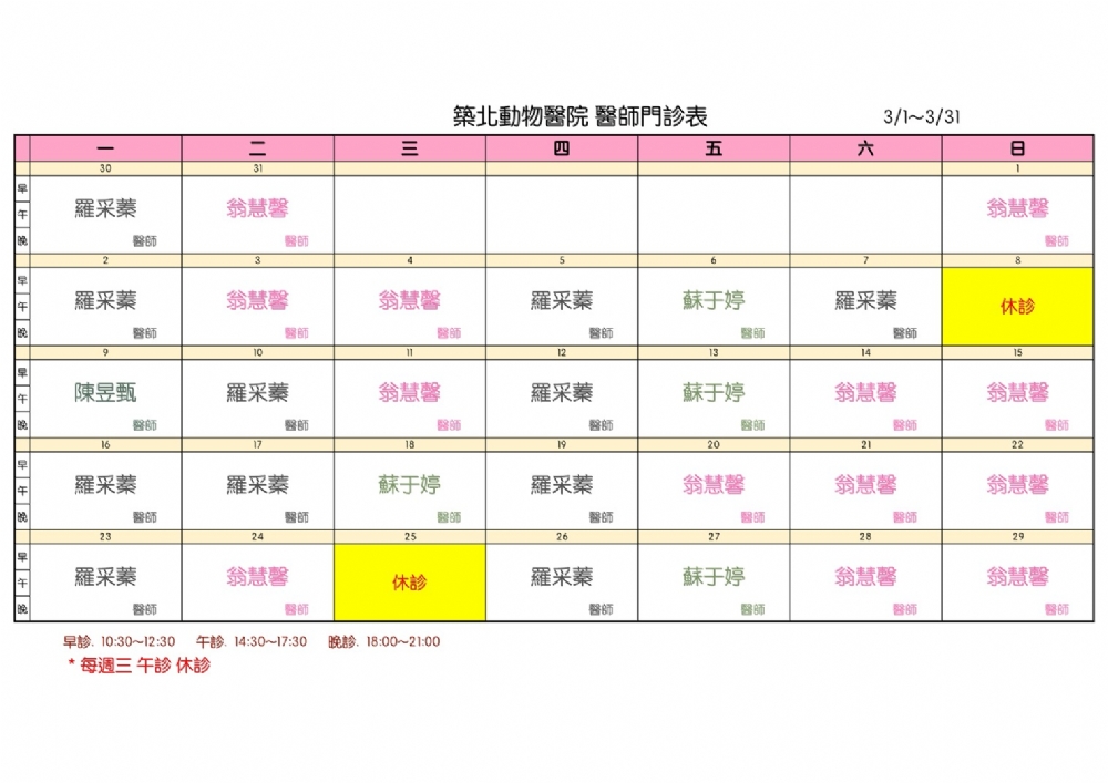 2026年3月門診表